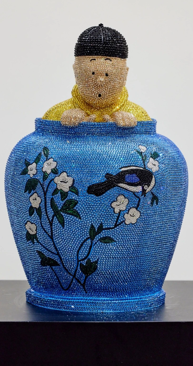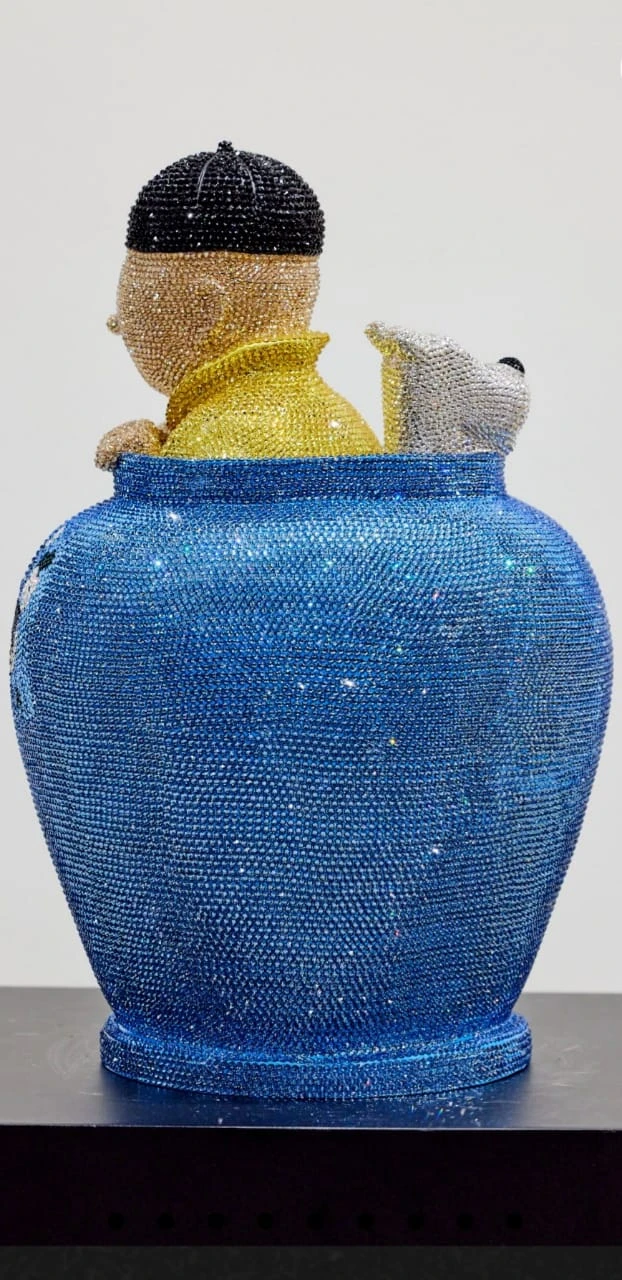 At first glance, one is captivated by the familiar figures of Tintin and his loyal companion, Snowy, emerging halfway from a pot. Frozen in a moment of eternal curiosity and boundless exploration, they beckon viewers into a world where the ordinary meets the extraordinary.